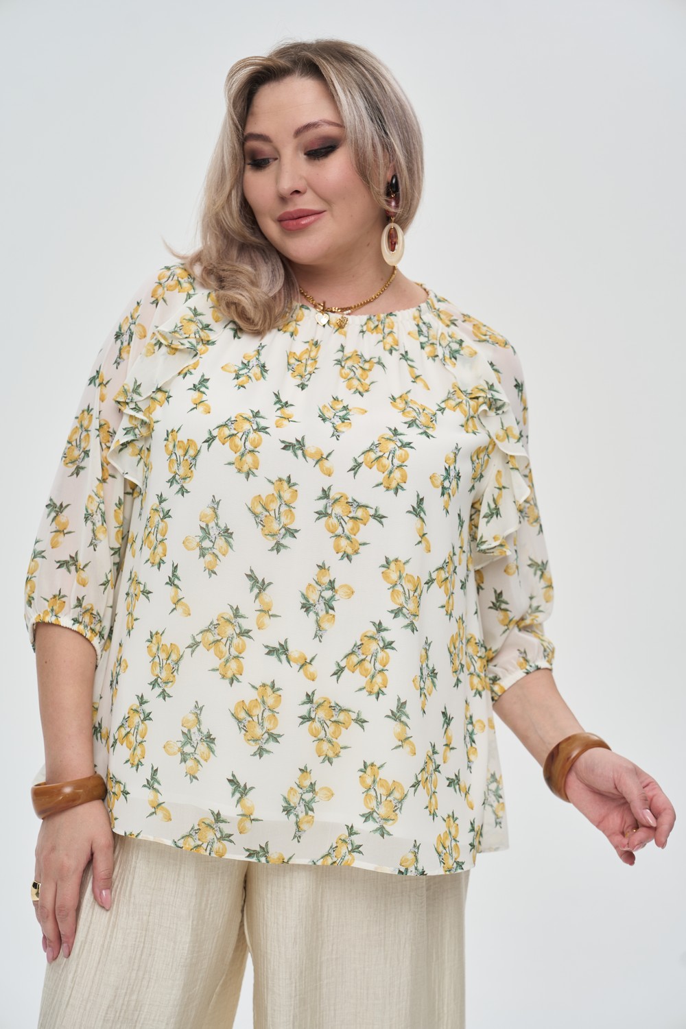 Описание: Женская белая с цветочным принтом блузка большого размера РОССО артикул 826028 бренда Intikoma (Интикома) - одежда для полных женщин. Модель выполнена из тонкого струящегося полотна, которое мягко драпируется, создавая женственный и воздушный образ. Рукав втачной 3/4. Свободный прямой крой, обеспечивающий комфортную посадку и свободу движений. Блуза идеально дополняет широкие брюки в бежевых или молочных тонах, создавая завершенный и стильный летний комплект.