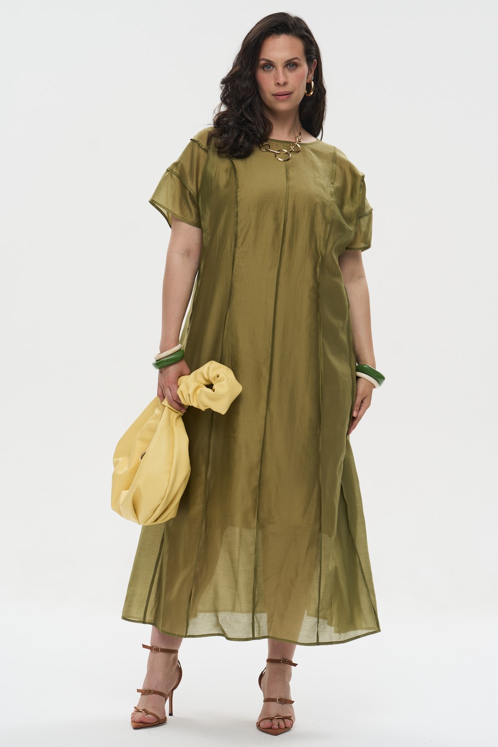 Женское оливковое макси платье А-силуэта большого размера ВУАЛЬ артикул 426009 бренда Intikoma (Интикома) - одежда для полных женщин. Модель выполнена из легкого смесового полотна. Платье великолепно смотрится как самостоятельный элемент с босоножками на тонких ремешках, так и в комплекте с укороченной курткой «Лукка» для создания более структурированного образа.