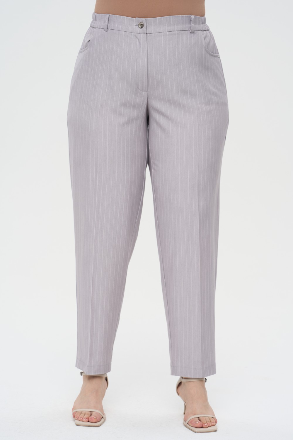 Описание: Женские серые в полоску зауженные книзу брюки большого размера РОБЕРТ артикул 726002 бренда Intikoma (Интикома) - женская одежда больших размеров. Модель выполнена из качественного полотна в тонкую полоску, в составе которого полиэстер, вискоза и эластан. Такой состав гарантирует изделию отличную износостойкость, минимальную сминаемость и комфортную посадку по фигуре. Четкие вертикальные стрелки добавляют модели графичности и поддерживают официальный стиль. Стильный костюм можно собрать с жакетом ДЮВАЛЬ артикул 526008.