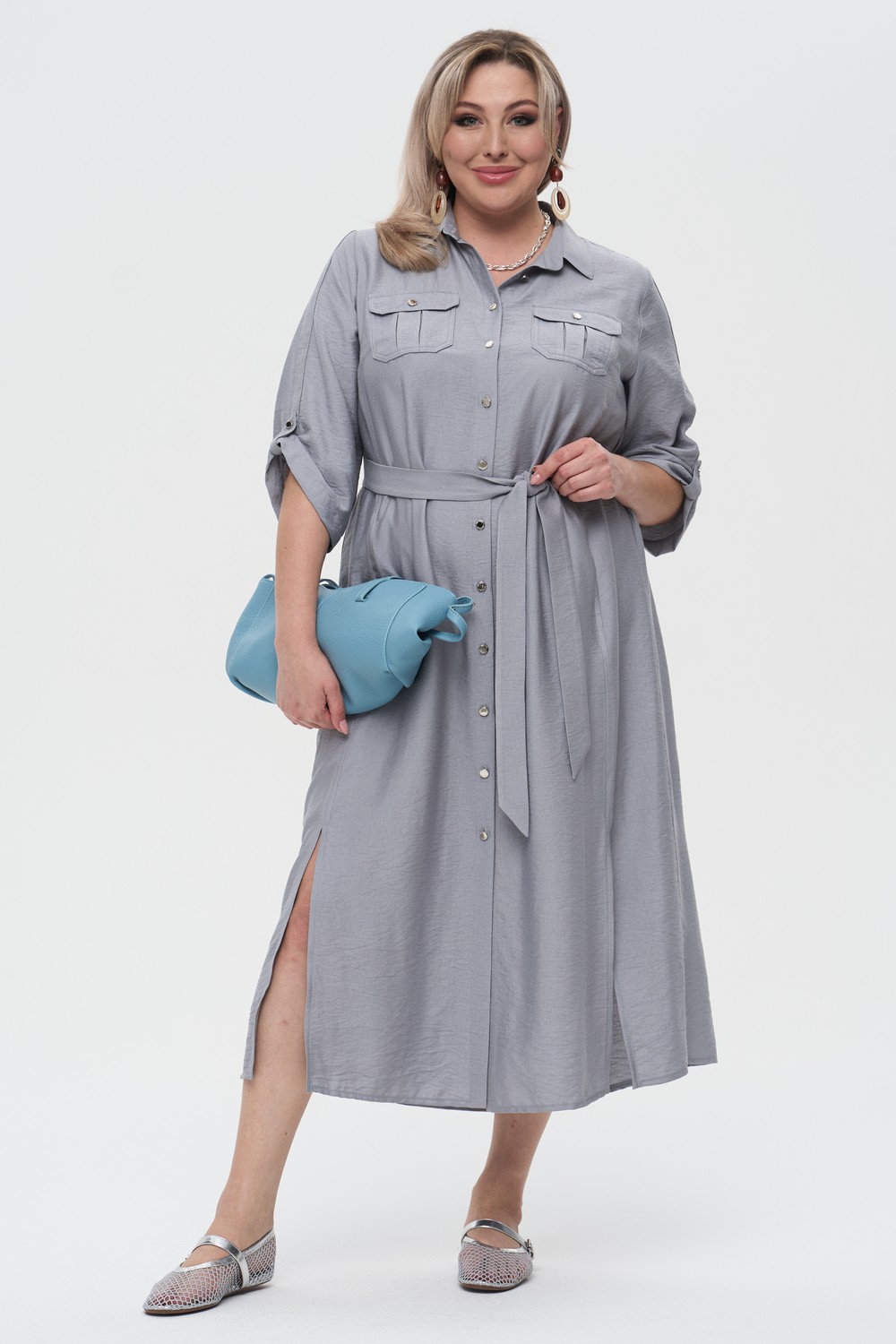 Женское серое миди платье-рубашка большого размера САФАРИ артикул 426021 бренда Intikoma (Интикома) - женская одежда большого размера. Платье-рубашка свободного прямого кроя, выполнено из мягкого смесового полотна с благородной жатой фактурой, которая обеспечивает превосходный комфорт в жаркую погоду и практичность в уходе.