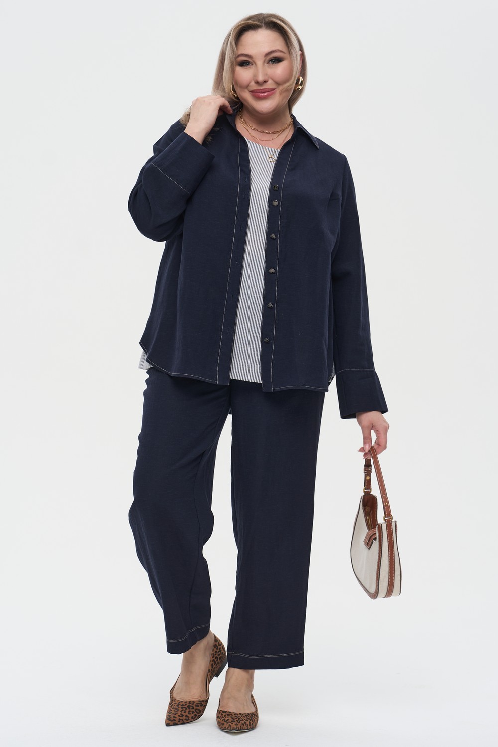 Описание: Женские синие прямые брюки большого размера ЛАВДЖОЙ артикул 726029 бренда Intikoma (Интикома) - женская одежда большого размера. Модель выполнена из высококачественного многокомпонентного полотна, длина полная. Стильный образ можно собрать с рубашкой ЭЛЬ артикул 826040