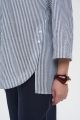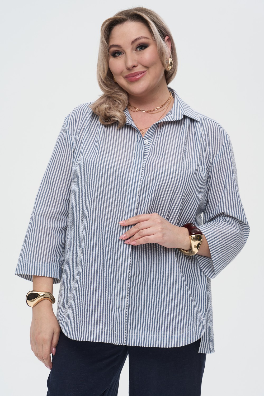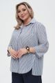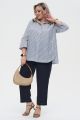 Женская классическая рубашка в сине-белую полоску большого размера ТРИОЛЬ артикул 826-15 бренда Intikoma (Интикома) - женская одежда plus size. РУбашка свободного кроя оверсайз с удлиненной спинкой.