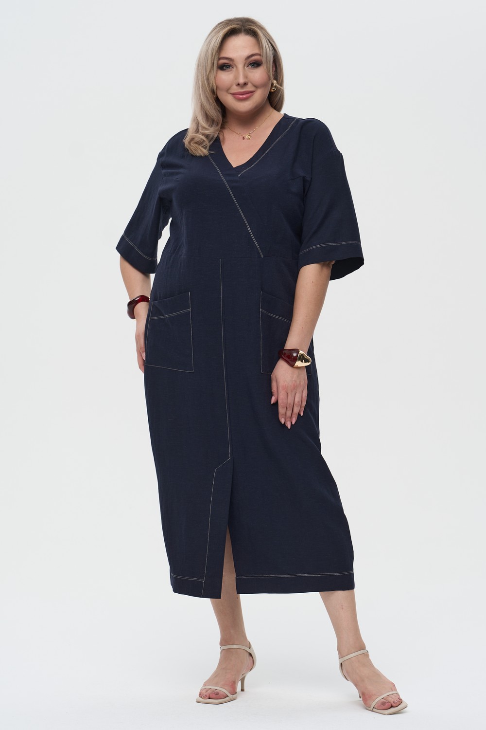 Описание: Женское темно-синее миди платье большого размера ВУДС артикул 426025 бренда Intikoma (Интикома) - одежда для полных женщин. Платье свободного прямого кроя, Свободный рукав длиной до локтя с мягкой линией плеча, обеспечивающий комфорт и скрывающий нюансы фигуры.