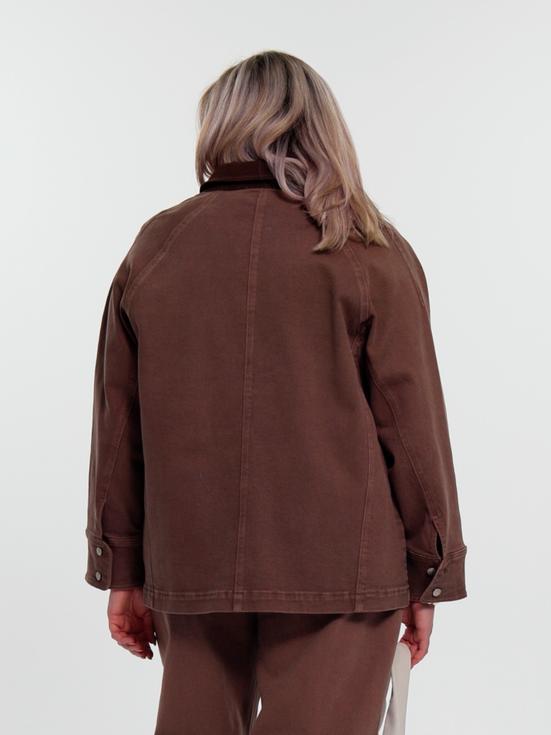 Женский коричневый жакет-джинсовка большого размера МАРА артикул 926012 бренда Intikoma (Интикома) - женская одежда больших размеров. Стильный комплект можно собратьс джинсами ХАЙЛАМИ артикул 926013