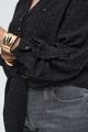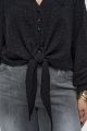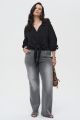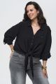 Женская черная блузка-рубашка большого размера КНЯЖЕНИНА артикул 826025 бренда Intikoma (Интикома) - женская одежда plus size. Рубашка свободного прямого кроя, который позволяет носить рубашку как классическим способом, так и завязанной на узел, создавая более расслабленный образ.