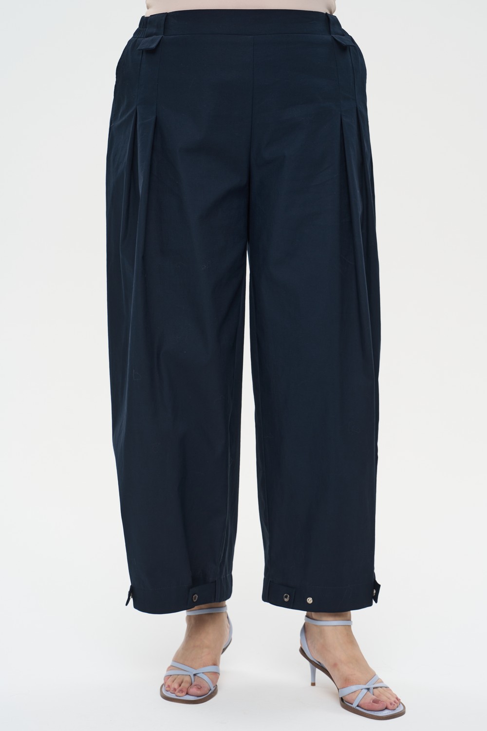 Описание: Женские темно-синие брюки-шаровары большого размера ШАРОВАРЫ артикул 726003 бренда Intikoma (Интикома) - одежда для полных женщин. Модель выполнена из качественного смесового полотна. Высокая посадка на талии, низ штанин дополнен патами на пуговицах, что позволяет регулировать ширину и создавать мягкие складки, фиксируя объем у щиколотки. Стильный образ можно дополнить жилетом КАВА артикул 526003