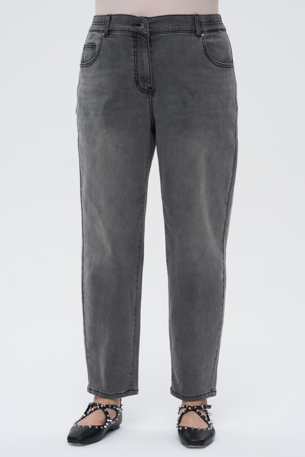 Женские серые зауженние книзу джинсы большого размера ФАРГО бренда Intikoma (Интикома) - одежда для полных женщин. Свободный крой «мом», который мягко обрисовывает линию бедер и слегка сужается к низу, создавая современный и непринужденный образ. Средняя или высокая посадка на талии обеспечивает удобство и универсальность для разных типов фигуры. Джинсы полной длины