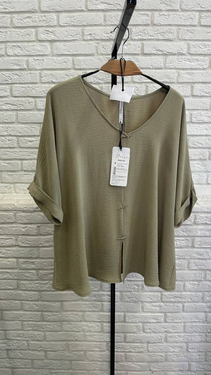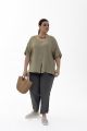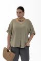 Женская летняя оливковая блуза большого размера ЛЮТИК артикул ВК26-004 бренда Terra (Терра) - женская одежда больших размеров. Блуза выполнена из легкой смесовой ткани.Блуза свободного силуэта с открытой линией шеи. Для фигуры