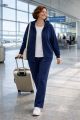 Женский синий хлопковый спортивный костюм болшого размера БАРРИ артикул ВК26-038 бренда Terra (Терра) - одежда для полных женщин. Комфортный трикотажный костюм: трикотаж плотный, мягкий, с легким бархатным эффектом. Колени не вытягиваются, форма отлично держится. В нем удобно поехать в путешествие, выйти на прогулку, встретиться с подругами или спокойно провести целый день в делах, добавив к образу жилет КВАРТЕТ ВК26-014