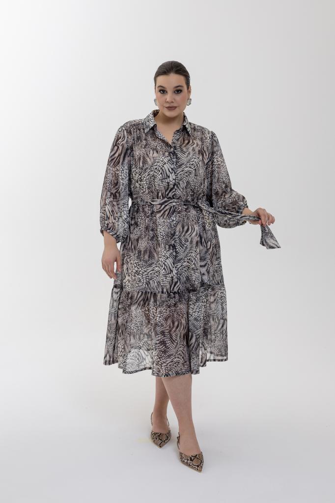 Женское шифоновое серо-коричневое платье с анмалистичным принтом большого размера ЭРИКА артикул ВК26-019 бренда Terra (Терра) - женская одежда plus size
