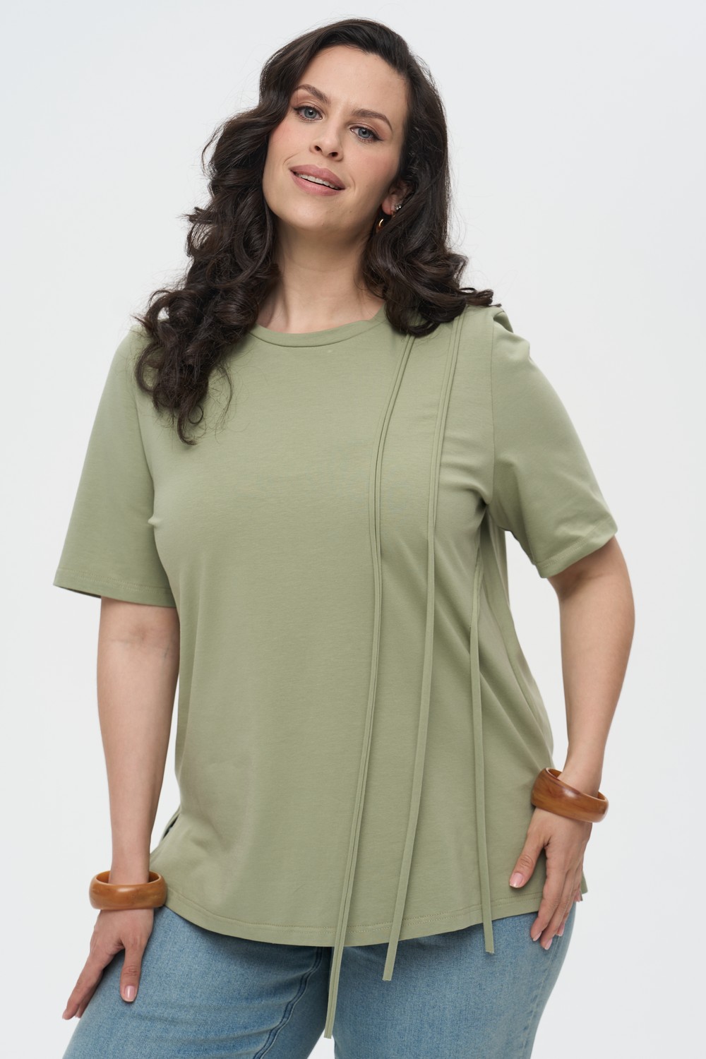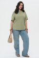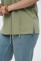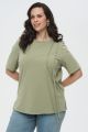 Женская футболка большого размера в цвете хаки ИНСАЙД артикул 226011 бренда Intikoma (Интикома) - женская одежда plus size. Футболка из мягкого трикотажного полотна. Футболка с акцентной деталью в виде декоративных вертикальных шнуров-завязок на передней полочке, которые добавляют модели современный асимметричный штрих.