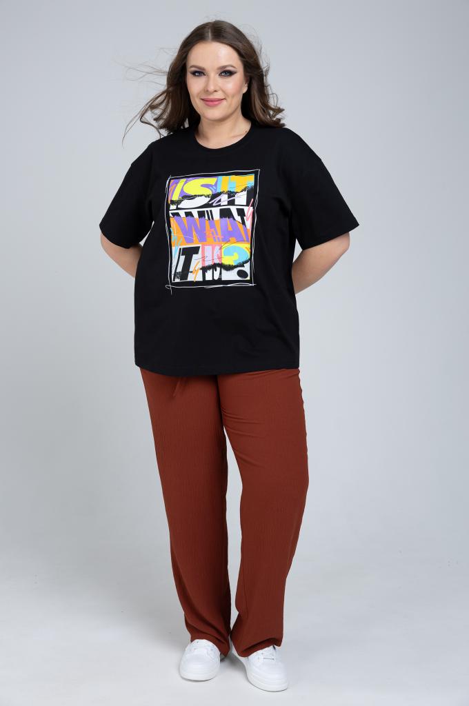 Женская черная футболка с принтом большого размера ВОЯЖ артикул ВК25-096 бренда Terra (Терра) - женская одежда большого размера.