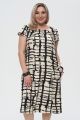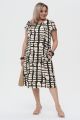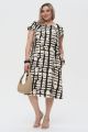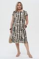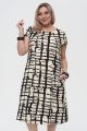 Женское черно-бежевое платье большого размера с геометрическим принтом ДЖАБУЛА бренда Интикома (Intikoma) - одежда для полных женщин. Платье прямого силуэта.