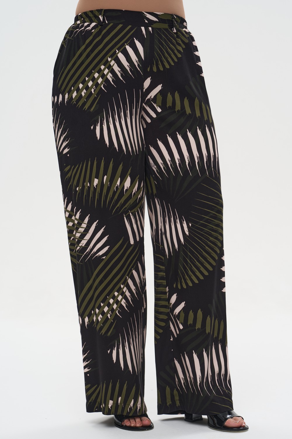 Женские широкие брюки большого размера с графическим принтом МЕЛОМАН бренда Интикома (Intikoma) - женская одежда plus size. Брюки широкие палаццо, высокая посадка на талии. Стильный комплект можно собрать с рубашкой СИМФОНИЯ 826010