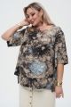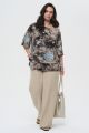 Описание: Женская разноцветная блузка большого размера с абстрактным принтом ТУМАЧ бренда Интикома (Intikoma) - женская одежда большого размера. Удлиненная спинка и небольшие разрезы по бокам позволяют носить блузу как навыпуск, так и частично заправленной, создавая разные стилистические акценты.