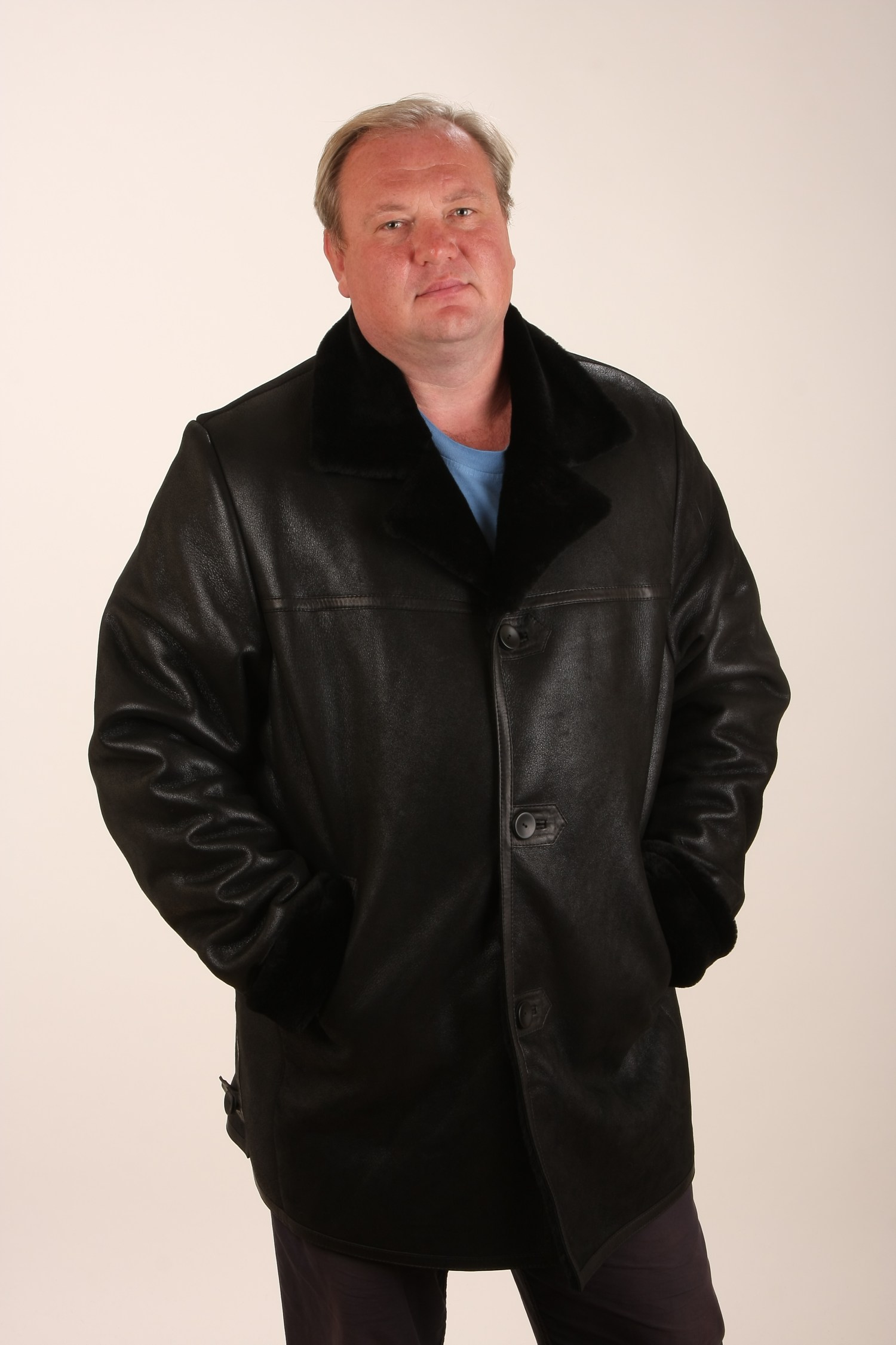 Описание: Уточняйте у менеджеров: некоторые размеры данной модели есть в наличии, а некоторые мы производим по Вашему индивидуальному заказу, по предоставленным Вами промерам. Срок выполнения заказа и доставки по России от 5 до 20 дней. Дубленка мужская на пуговицах. Кант по линии кокетки, краям борта и низа, окантовка петель и листочка прорезного кармана выполнены из натуральной кожи. “Английский” воротник с лацканами можно застегнуть наглухо. Длина рукава регулируется отворотом. Длина по спинке 89 см.
