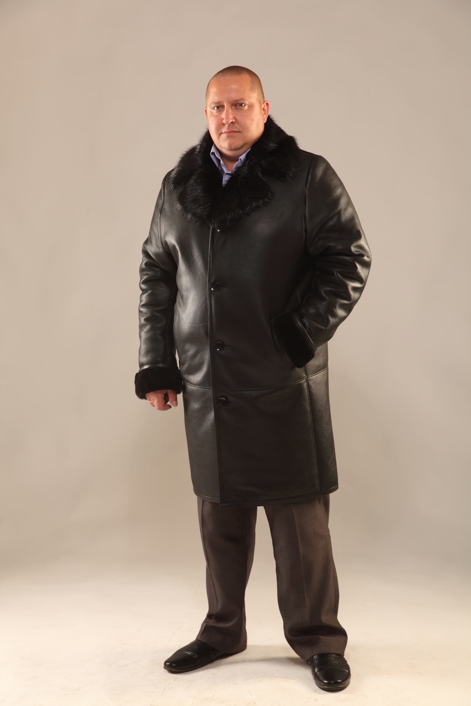 ВНИМАНИЕ: Уточняйте у менеджеров, некоторые размеры данной модели есть в наличии, а некоторые мы производим по Вашему индивидуальному заказу, по предоставленным Вами промерам. Срок выполнения заказа и доставки по России от 5 до 20 дней. – Дубленка мужская классического покроя из натурального меха с обработкой “силка”. – Английский воротник выполнен из меха бобра. – Нагрудный внутренний карман закрывается на молнию. – Длина рукава регулируется отворотом.
